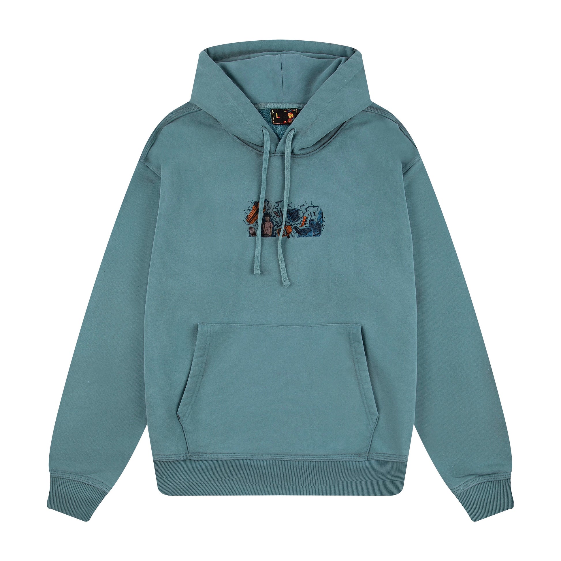 heat reactive/ this item is heavily washed/ preshrunk/ 80% cotton 20%/ polyester/ embroidered front design/ manufactured in Turkey/ fits boxy