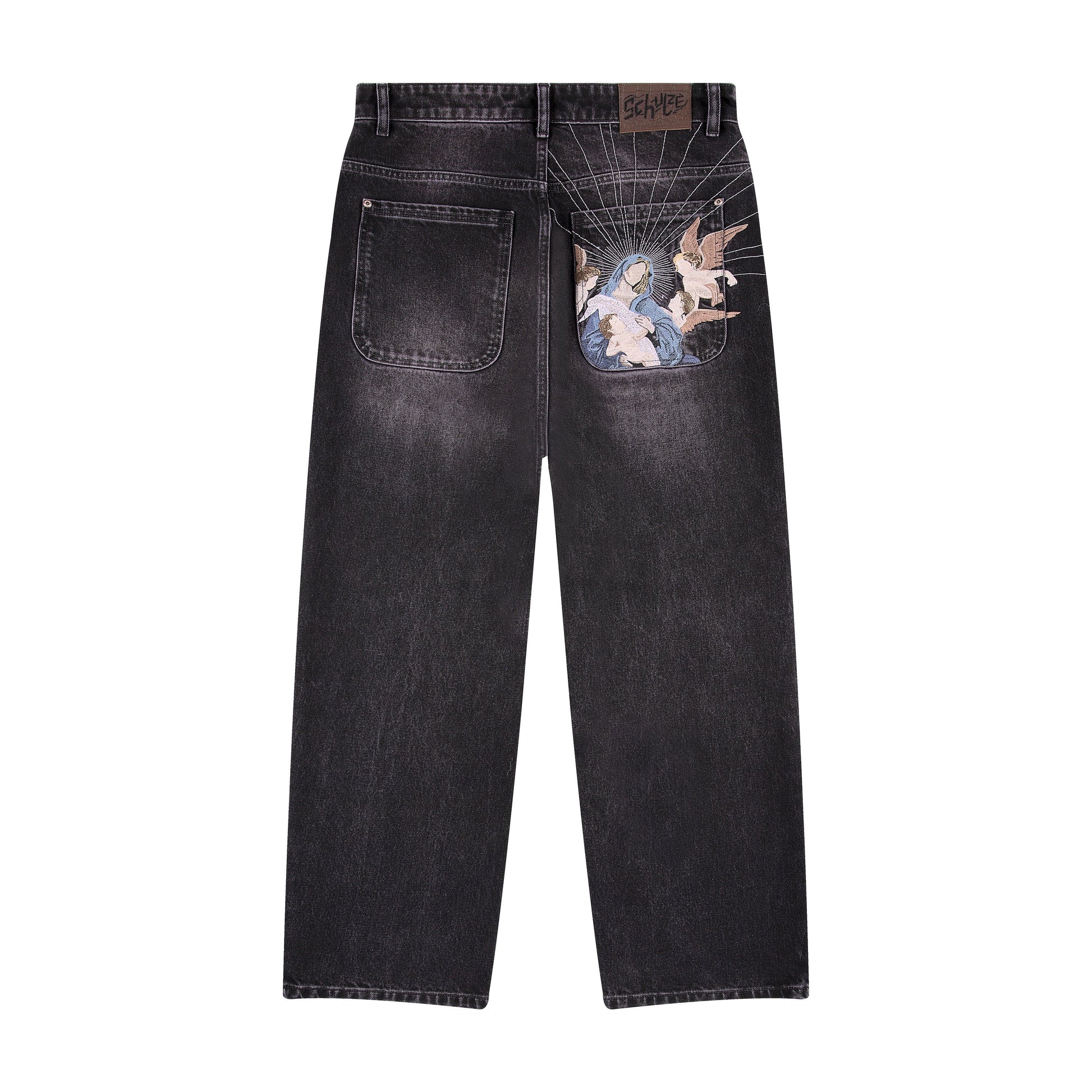 14,5oz denim/ 100% cotton/ embroidery on back/ purple tint/?baggy fit