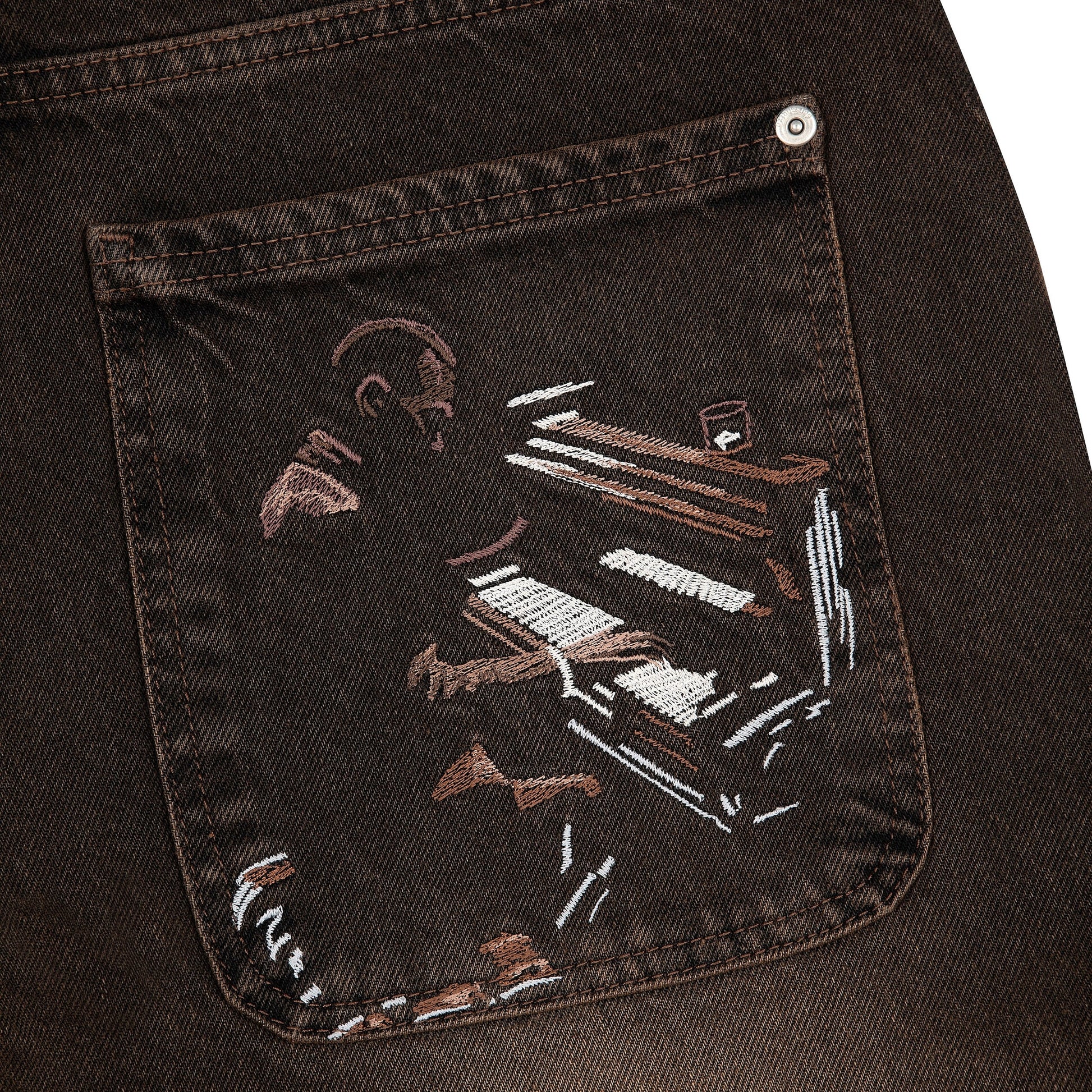 14,5oz denim / 100% cotton / embroidery on back pocket / brown tint / embroidered leather patch / baggy fit