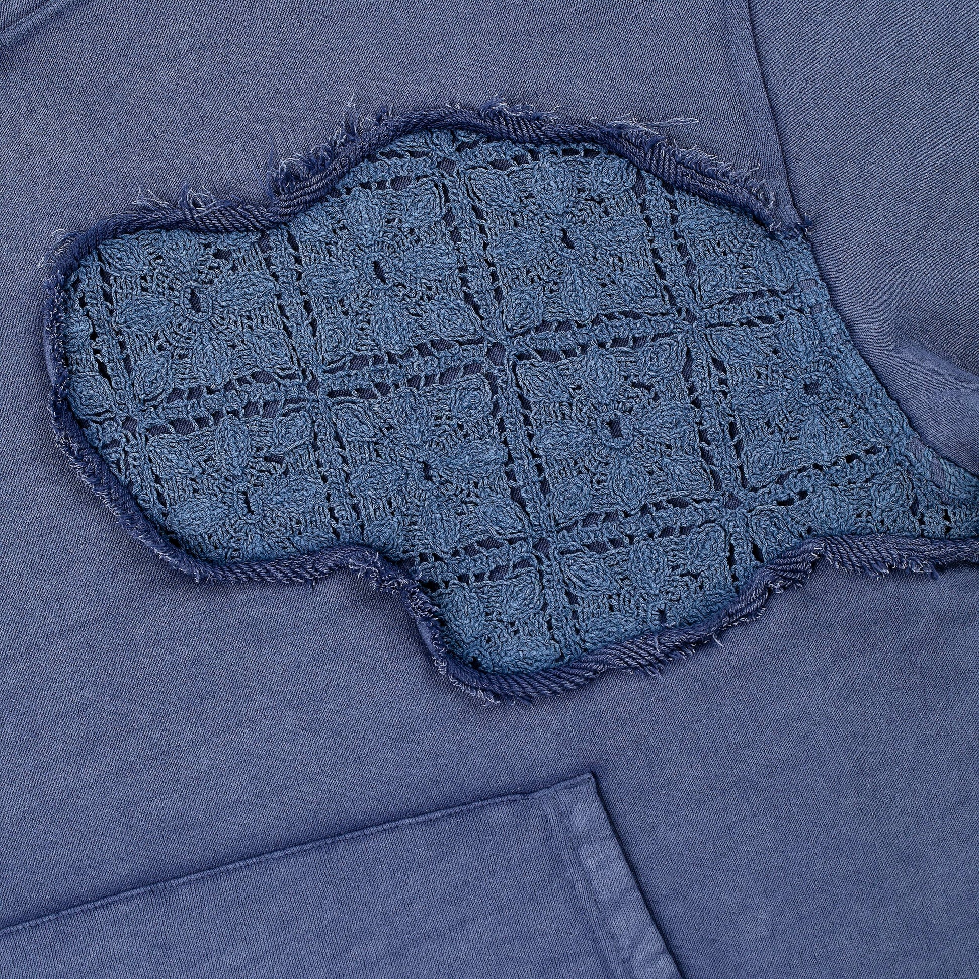 480gsm French terry / 200 000+ stitches embroidery on back / 100% preshrunk cotton / washed effect / embedded crochet detailing / embroidery on back / fits true to size