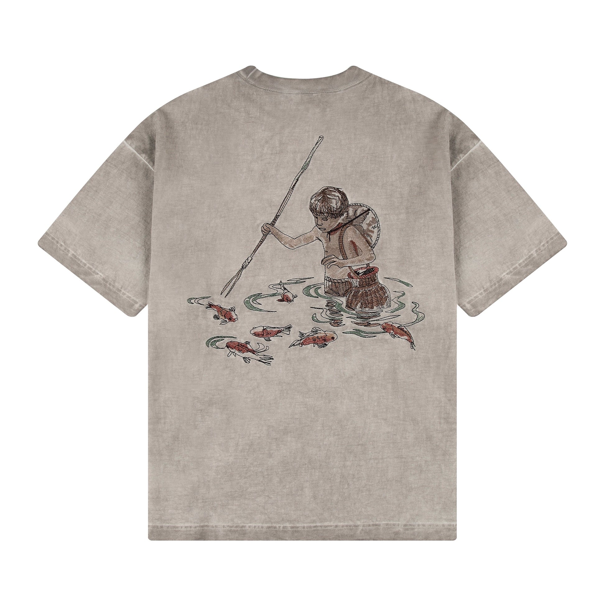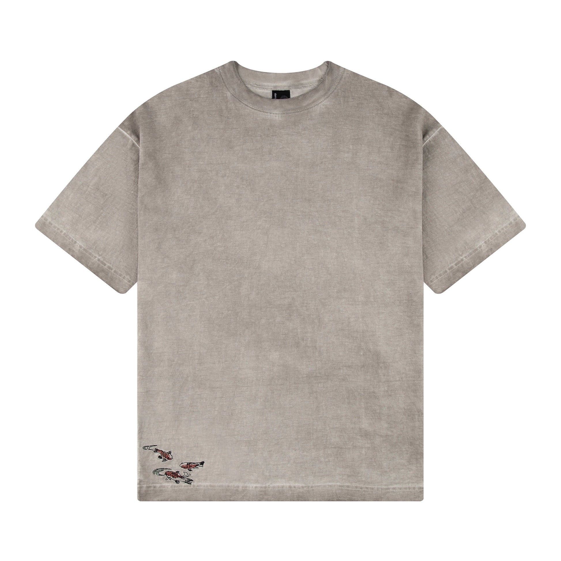 "lotus" T shirt oil washed light grey