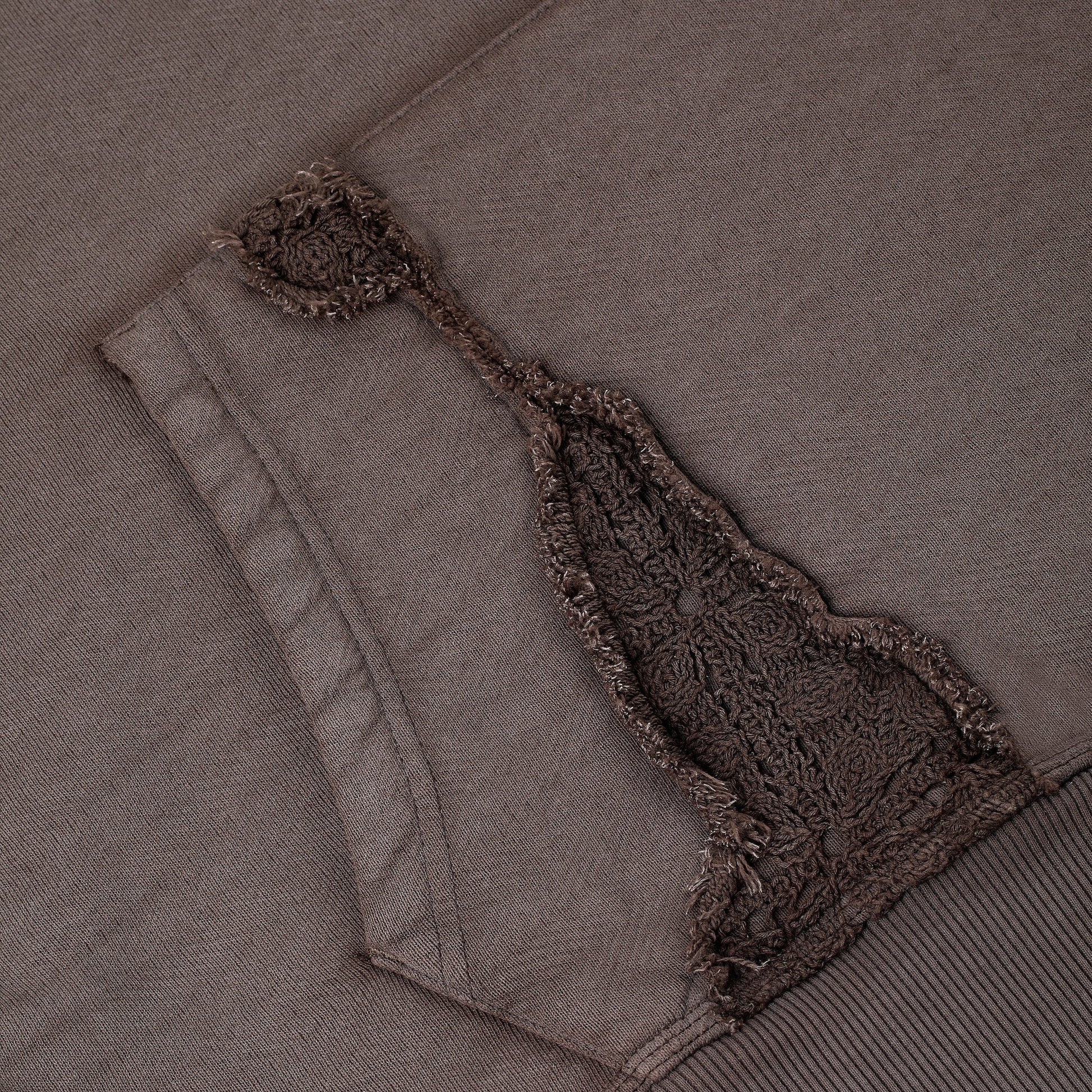 480gsm French terry / 100% preshrunk cotton / washed effect / embedded crochet detailing / embroidery on back / fits true to size