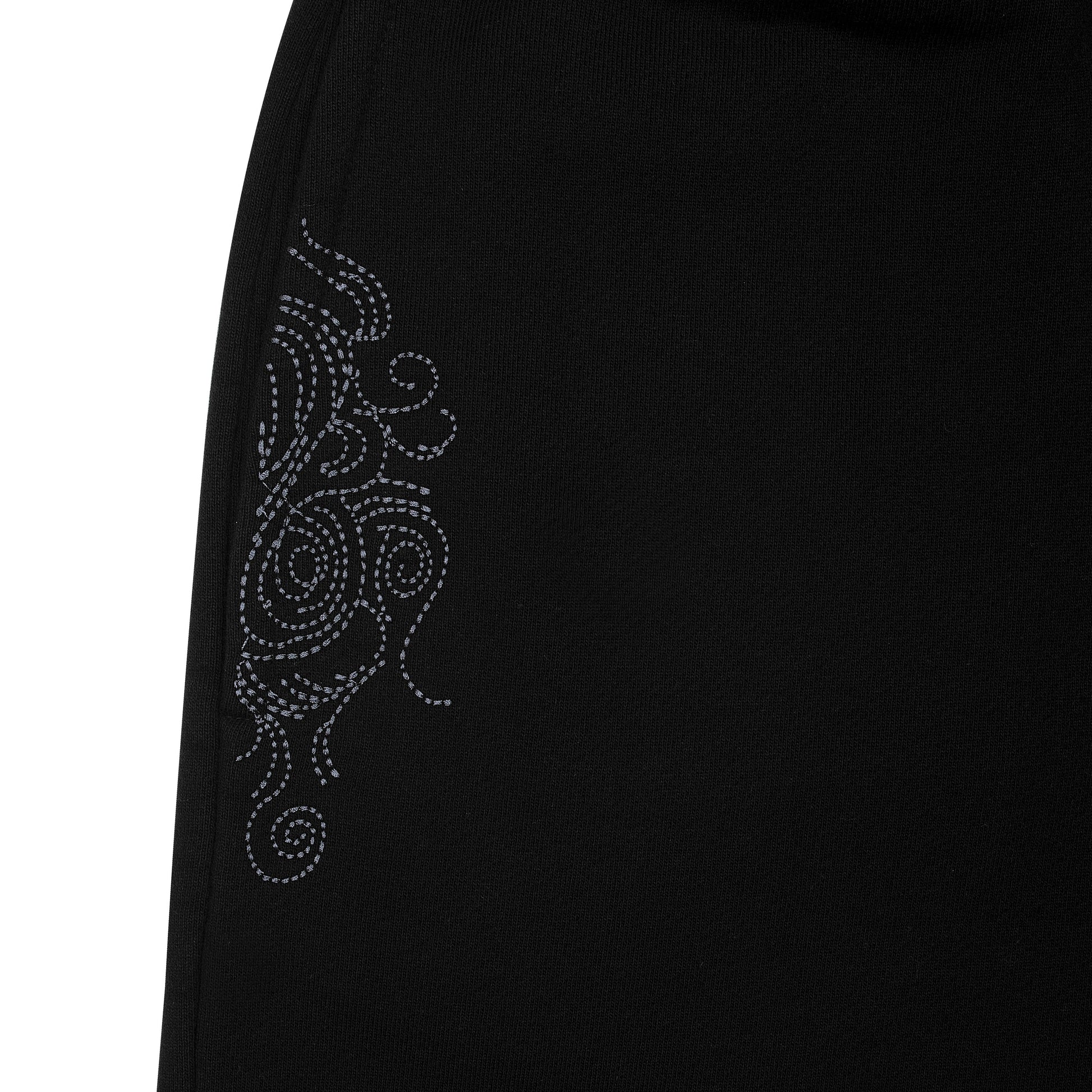 480gsm / 100% preshrunk cotton / embroidery on back pocket, front pocket and leg opening / fits baggy