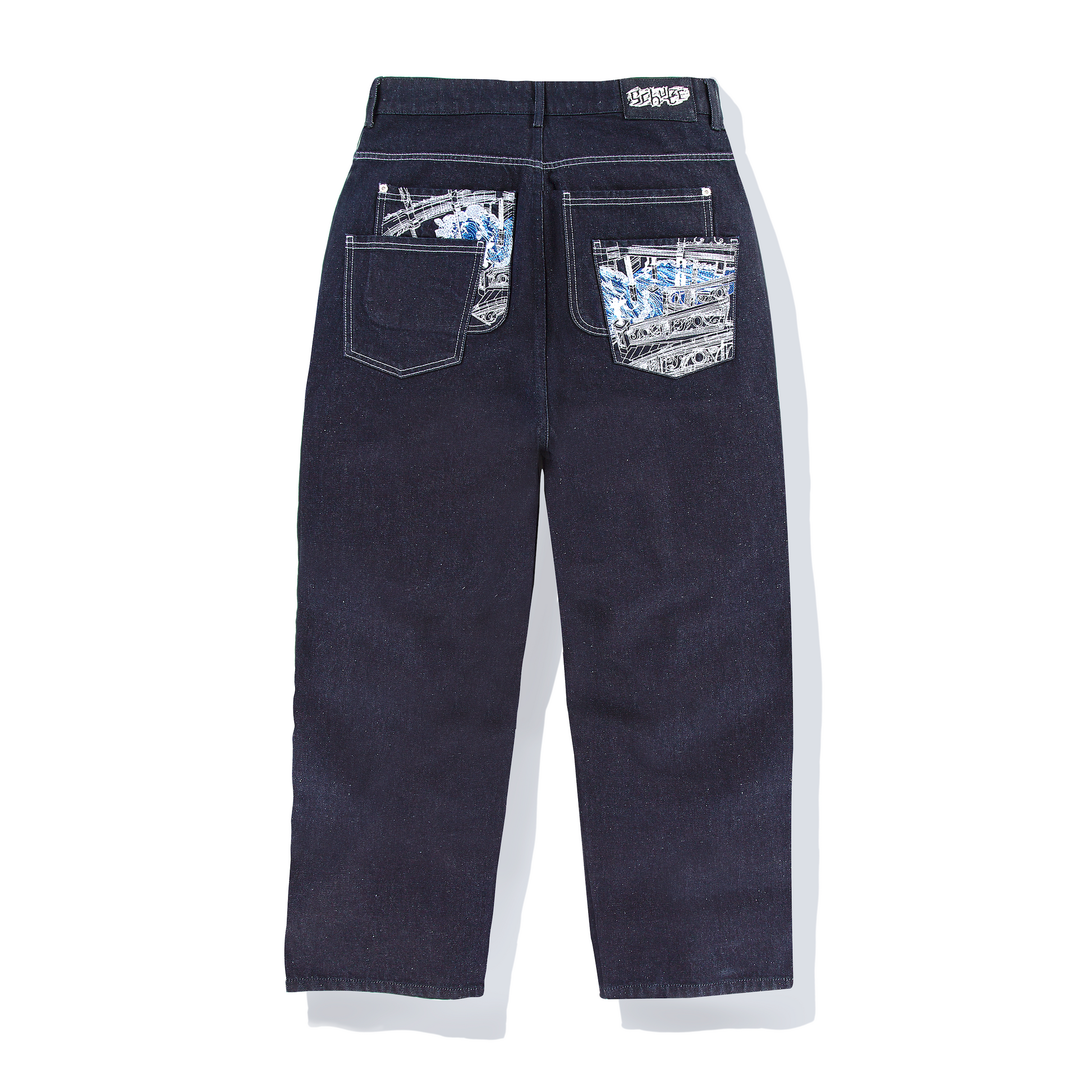 14,5 oz washed denim/ 100% cotton/ double back pocket detail/ embroidered design on back pockets/ manufactured in?Türkiye