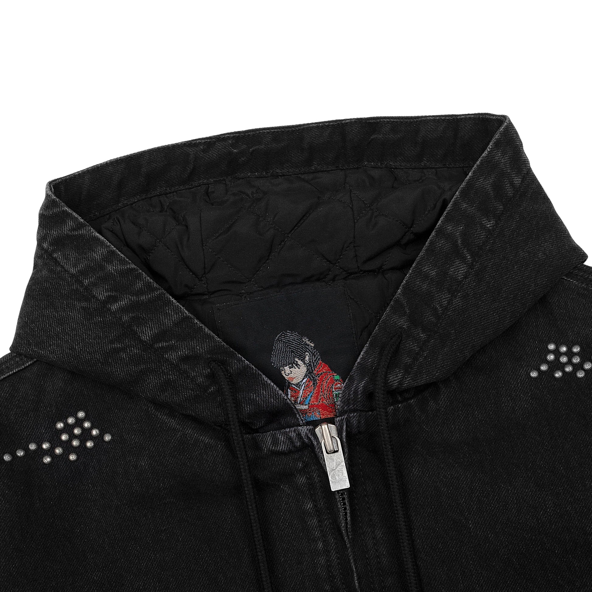 14oz denim / 100% cotton / YKK Zipper / studded details / embroidery on back / fits true to size