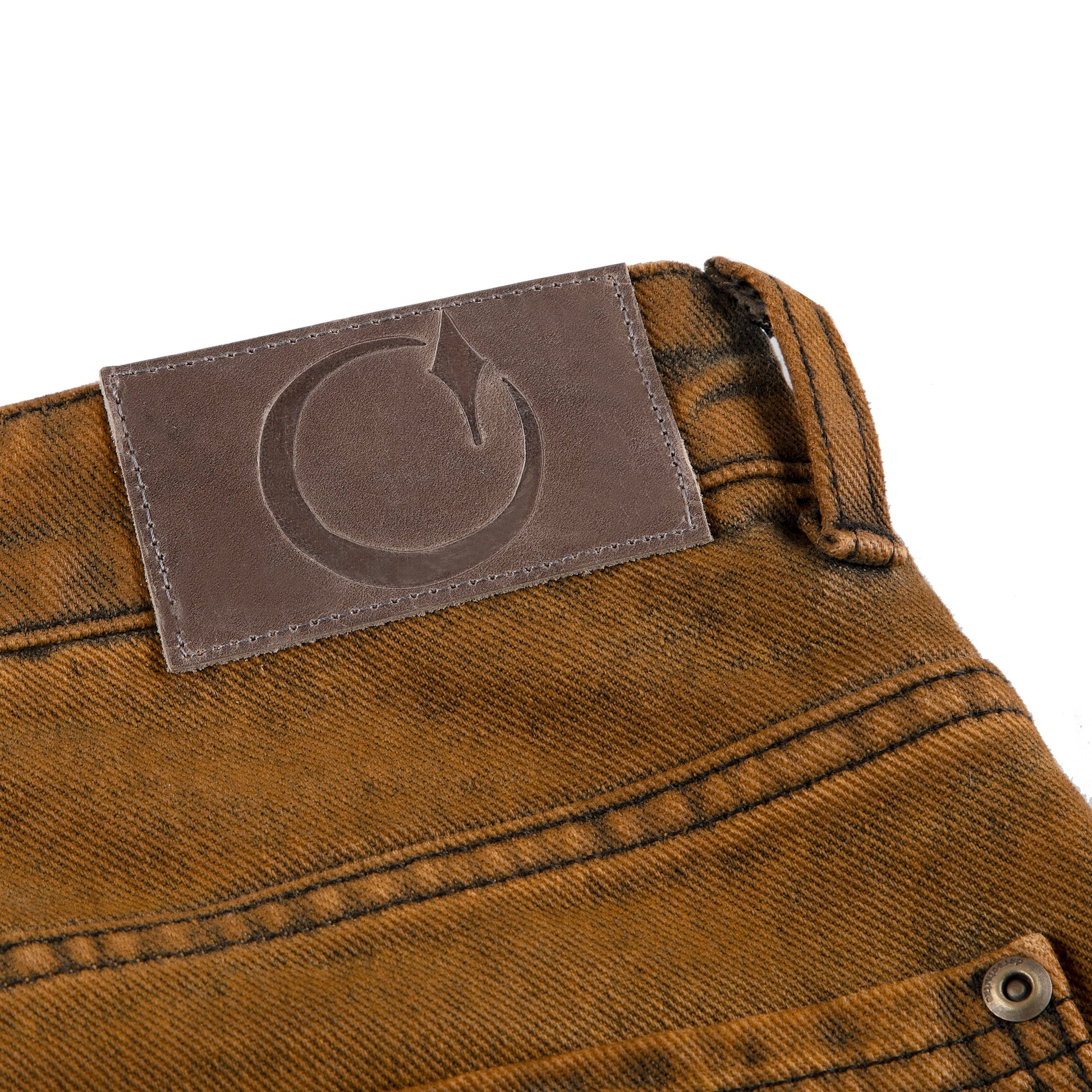 14,5 oz denim / 100% cotton/ 300 000+ stitches embroidery back details/ leather patch on back/ over knee baggy fit